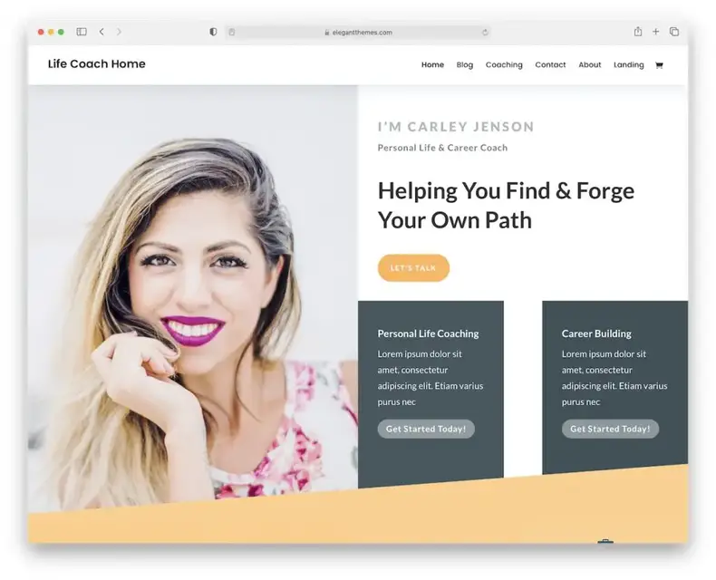 LifeGuide è un tema WordPress pulito, professionale, intuitivo e moderno per personal trainer, life coach, mentori e relatori motivazionali.